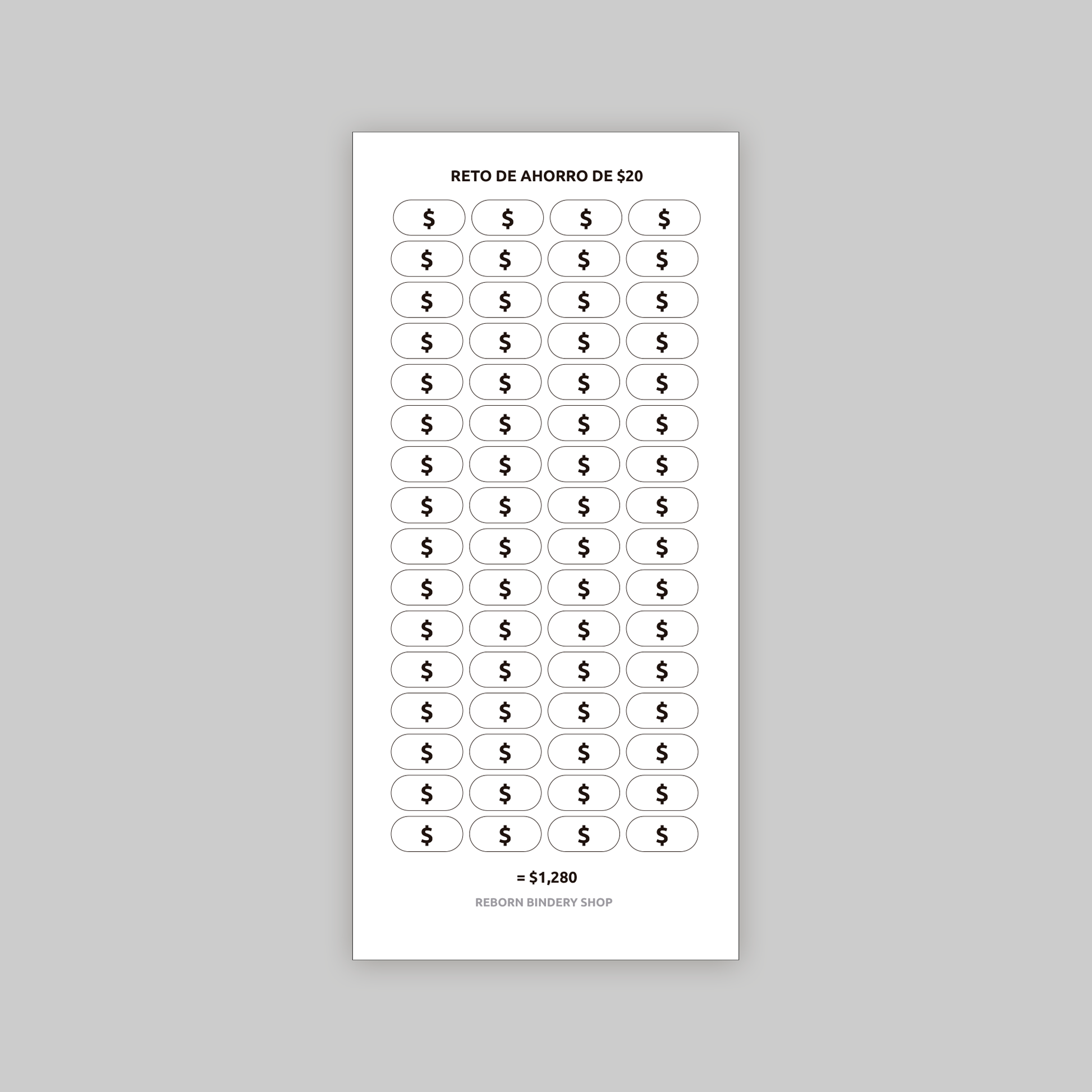 Reto de Ahorro $20 – Plantilla Digital Reutilizable